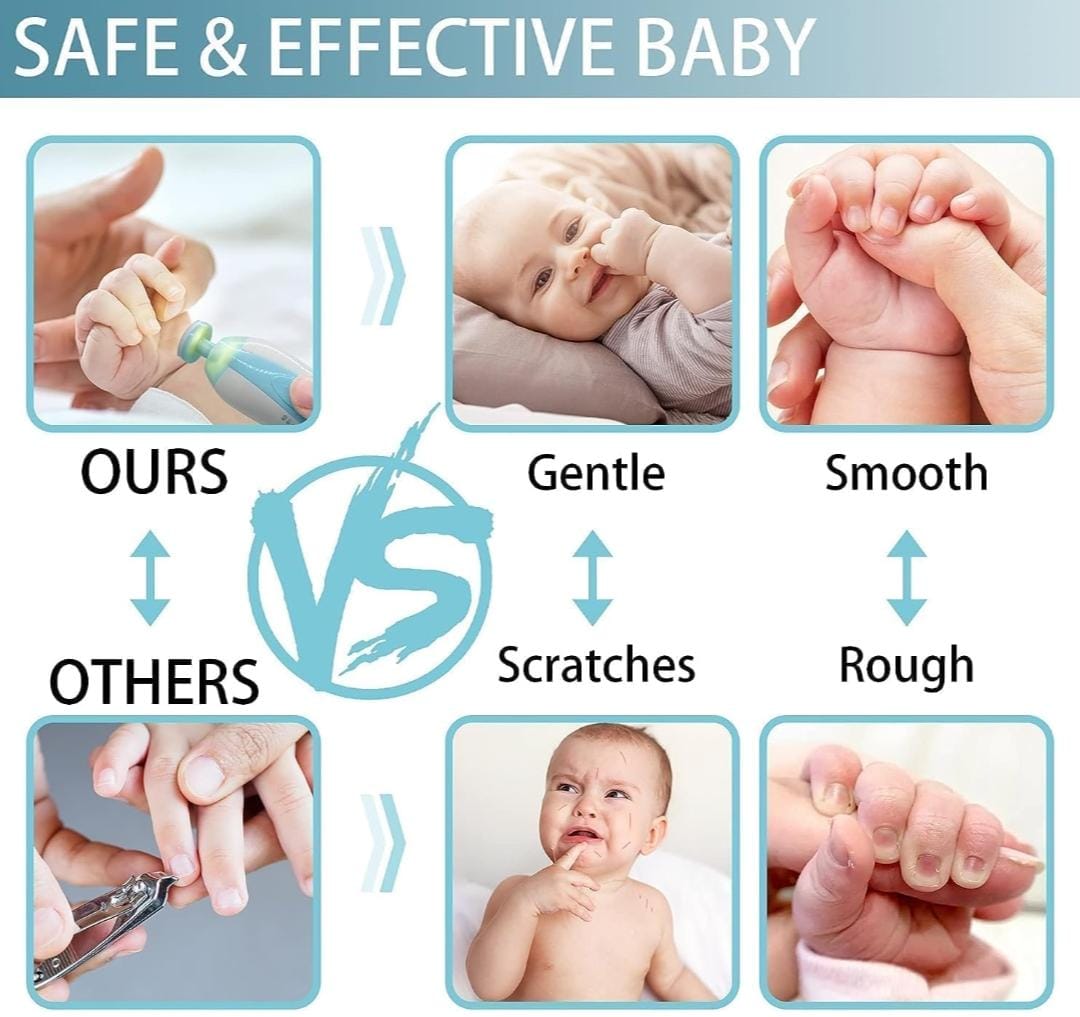 - [LED Light and Quite]: This baby nail file is built in soft led front light, it will help to use in dark environment, and it’s quite during operation, can use the kit when baby sleeping, no worry the baby crying when clear nails