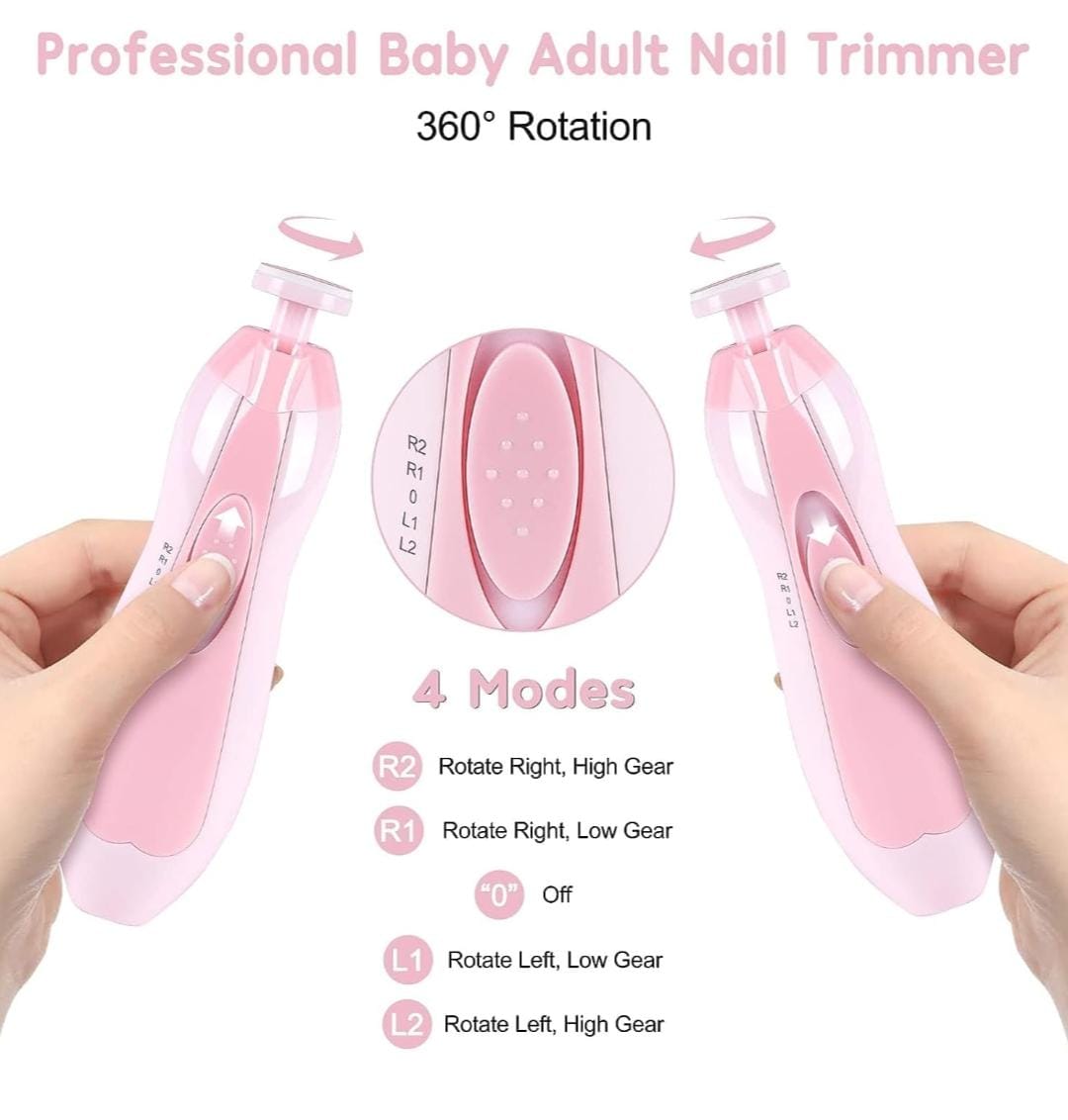 - [Safe and Effective]: Compared to the traditional nail clipper, this baby nail file electric is powered by 2AA batteries (not included), and with 4 adjustable speed, which is more safe to trim and polish baby’s finger toes and toes quickly, no harm to baby skin